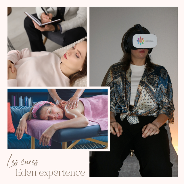 Vous serez transportés en Eden grâce à un casque de réalité virtuelle optimisé, dans le but de favoriser votre bien-être.